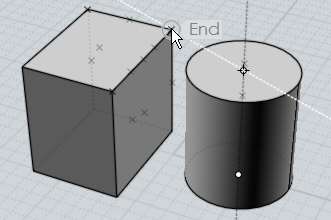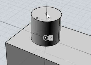 Ici un exemple de projection servant à placer le point sommital d'un cylindre à une égale hauteur d'un objet boîte existant.