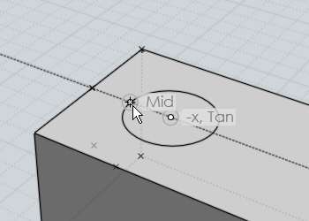 Après avoir lancée la commande ''Cylindre'' une Ligne de construction est créée depuis le milieu du bord côté de la boîte jusqu'à sa fin.