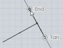 Pour dessiner une telle ligne, lancer la commande ''Ligne'' et cliquez le premier point à la fin de la courbe que vous pouvez aisément attraper: