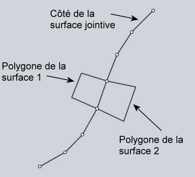 Contrôle comment les soudures des points des polygones sont connectées le long des bords communs entre les surfaces.