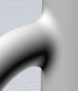 a model, and the line represents a fillet radius that is larger than the size of the bend.