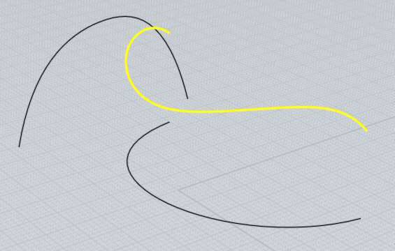 This command can also be used to create a "curve from 2 views" when the inputs are 2 planar profile curves facing different directions. This is the equivalent of doing an extrusion of each curve and intersecting the extruded surfaces.