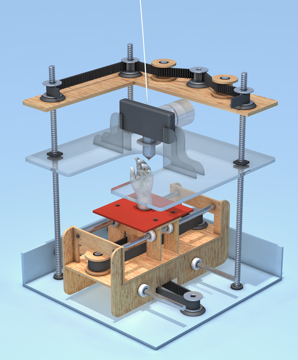 Part of an infographic about relatively cheap 3Dprinters for home use. Modelled in Moi (except hand...) and rendered in Cinema4D.