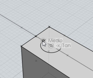 Ora si può disporre di un punto di snap alla stessa distanza rispetto al vertice del box per posizionare il cilindro.