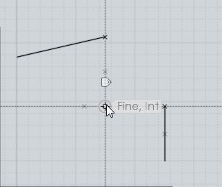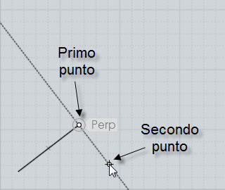 Esempio: creando una lina di costruzione tra due punti nella prima immagine viene creato un punto di snap addizionale come mostrato nella seconda immagine: