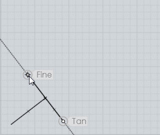 Le linea di costruzione vengono sempre tracciate tra due punti ( il punto dal quale inizia il trascinamento, ed il punto in cui viene rilasciato il pulsante del mouse). Il punto medio delle linee di costruzione è disponibile per ulteriori snap o per la riflessione del punto finale.