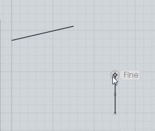 Verrà segnalato lo snap con l'estemità della linea. Fare clic, e trascinare la nuova linea di costruzione verso il basso, in verticale, fino ad intersecare la linea precedente. Rilasciare il pulsante del mouse.