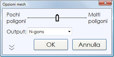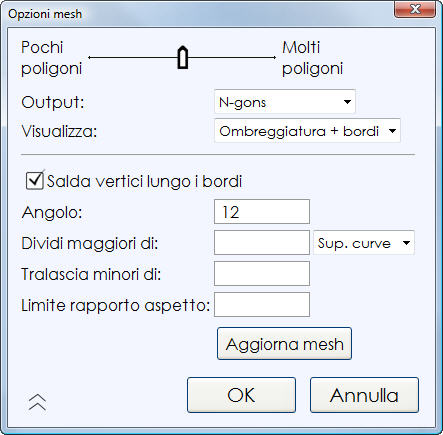 All'inizio del processo di trasformazione viene visualizzata la finestra di dialogo "Opzioni Mesh", nella quale è possibile definire i paramentri di generazione dei poligoni.